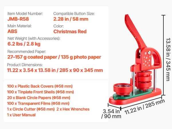 Komplettes DIY-Kit inklusive: Diese Knopfdruckmaschine enthält alles, was Sie brauchen: 100 Kunststoffrückseiten, 100 Weißblechvorderseiten, 20 Blankopapiere, 100 Mylarfolien, einen Kreisschneider, 2 Inbusschlüssel und eine Bedienungsanleitung. Keine zusätzlichen Anschaffungen erforderlich