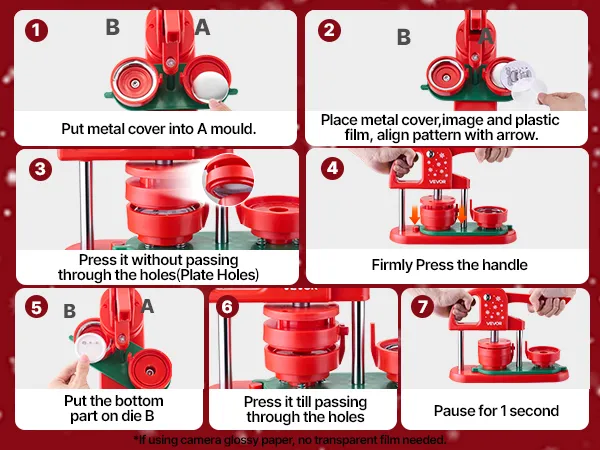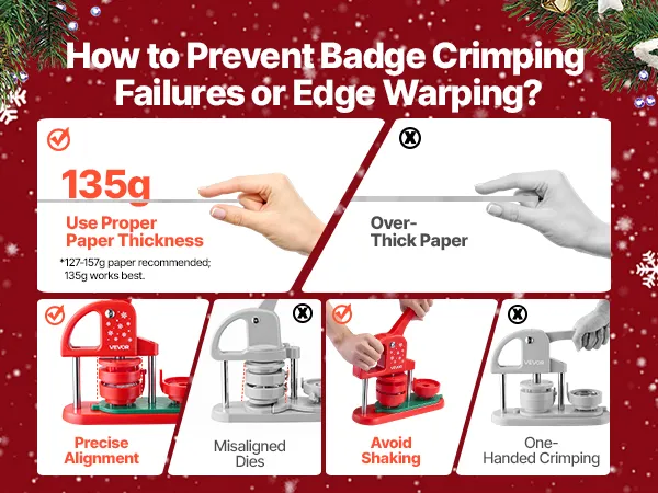 Hohe Erfolgsquote: Präzise Formen und Ausrichtungshilfen verhindern ein Verkanten der Designs und gewährleisten optimale Ergebnisse. Es wird empfohlen, Papier mit einem Gewicht von 127–157 g zu verwenden (135 g eignet sich besonders gut). Vermeiden Sie ein Verrutschen der Formen während der Verwendung der Buttonmaschine