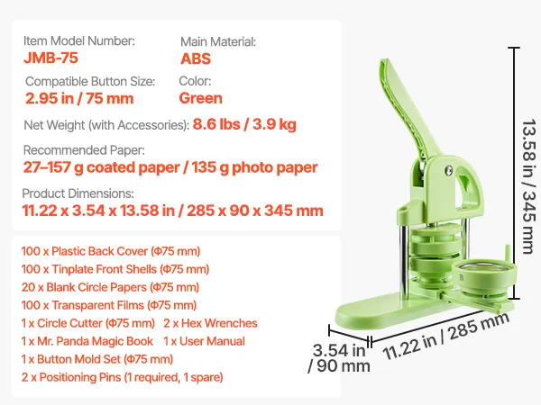 Diese einfache und benutzerfreundliche Buttonmaschine erfordert keine aufwendige Installation. Sie sorgt für eine präzise Musterausrichtung. Ob für die gemeinsame Zeit mit der Familie oder zum kreativen Spielen mit Freunden – sie bietet ein unterhaltsames und spannendes DIY-Erlebnis, das die Kreativität anregt und Menschen einander näherbringt.