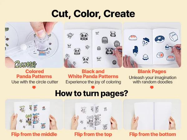 Exklusiver Spaß: Die Knopfdruckmaschine enthält ein Zauberbuch mit drei lustigen Aktivitäten: Bunte Panda-Motive zum Ausschneiden, schwarz-weiße Panda-Motive zum Ausmalen und leere Seiten für eigene kreative Ideen. Mit dem süßen Mr.-Panda-Abzeichen sehen Sie noch cooler aus