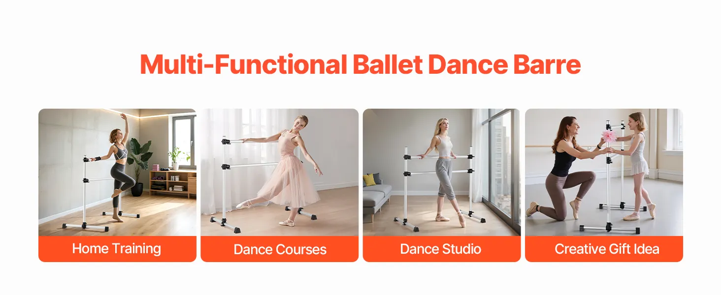 Vielfältige Fitnessmöglichkeiten: Die Ballettstange ist ideal für Ballettschüler und professionelle Tänzer. Sie ist ein hervorragendes Dehngerät zum Üben von Posen und Haltungen. Sie eignet sich auch für Pilates und Ausdauertraining