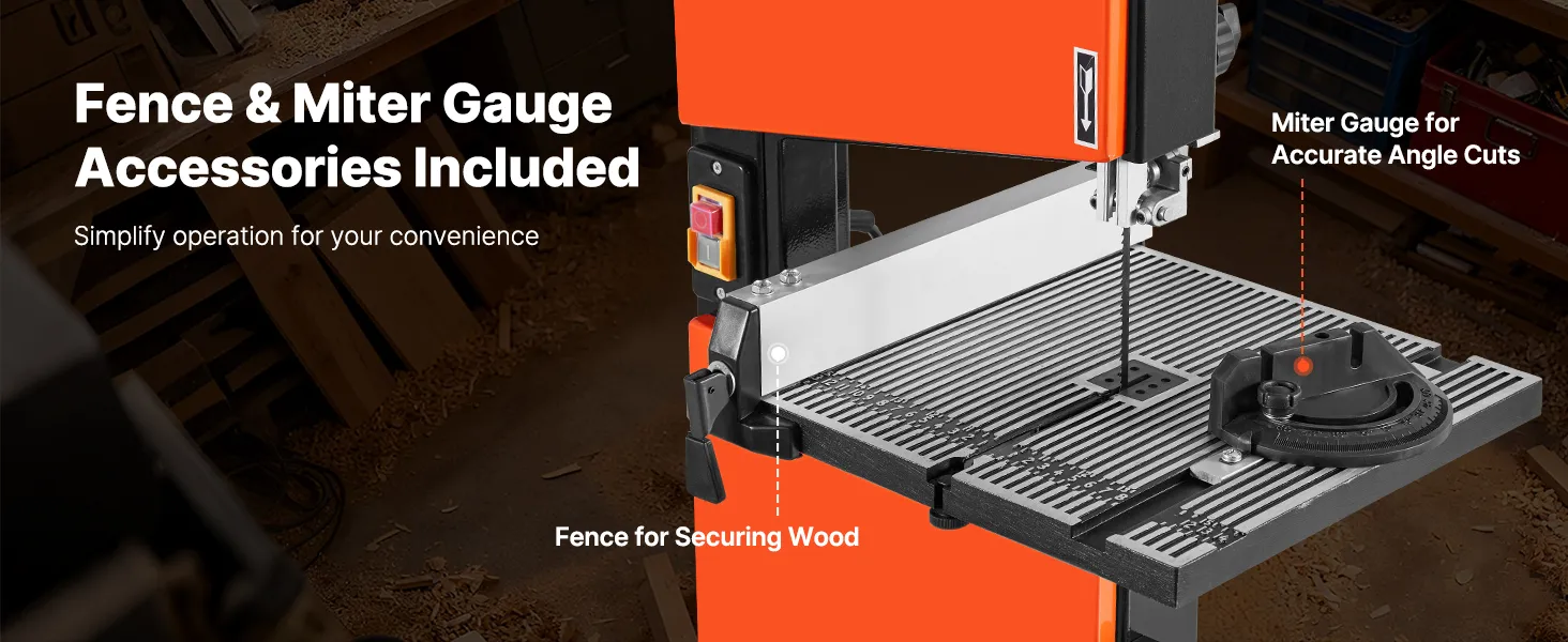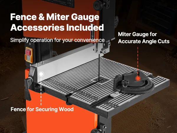 Wesentliches Zubehör im Lieferumfang enthalten: Diese Holzbearbeitungs-Bandsäge wird standardmäßig mit einem Parallelanschlag und einem Gehrungsanschlag geliefert und steigert so Ihre Schnittpräzision und Gesamteffizienz.