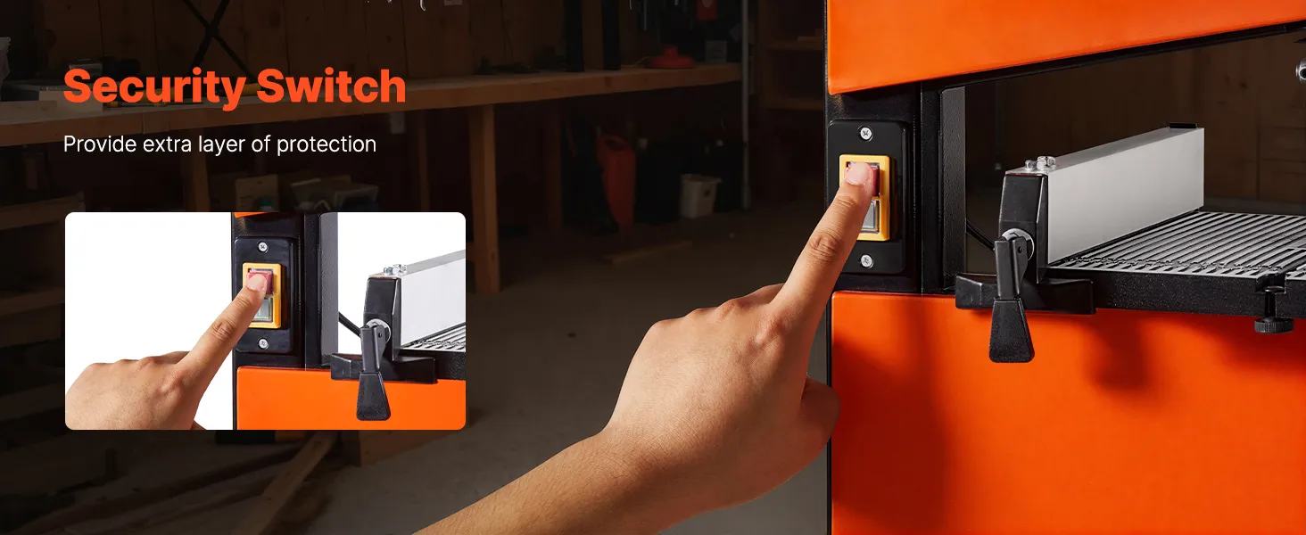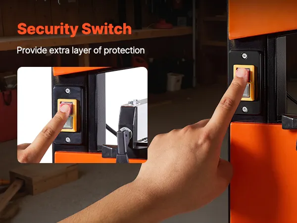 Ein doppeltes Sicherheitsschaltersystem verhindert versehentliches Einschalten durch Stöße, Überspannungen oder äußere Störungen. Unsere Tischbandsäge bietet Ihnen ein sicheres Arbeitsumfeld.