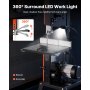 360°-LED-Arbeitsleuchte: Die integrierte LED-Leuchte beleuchtet den Schnittbereich aus jedem Winkel, reduziert Schatten und verbessert die Sicht. Diese Bandsäge für die Holzbearbeitung gewährleistet sichere Schnitte auch in dunklen Arbeitsbereichen.