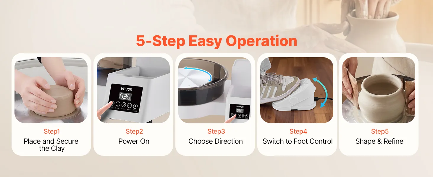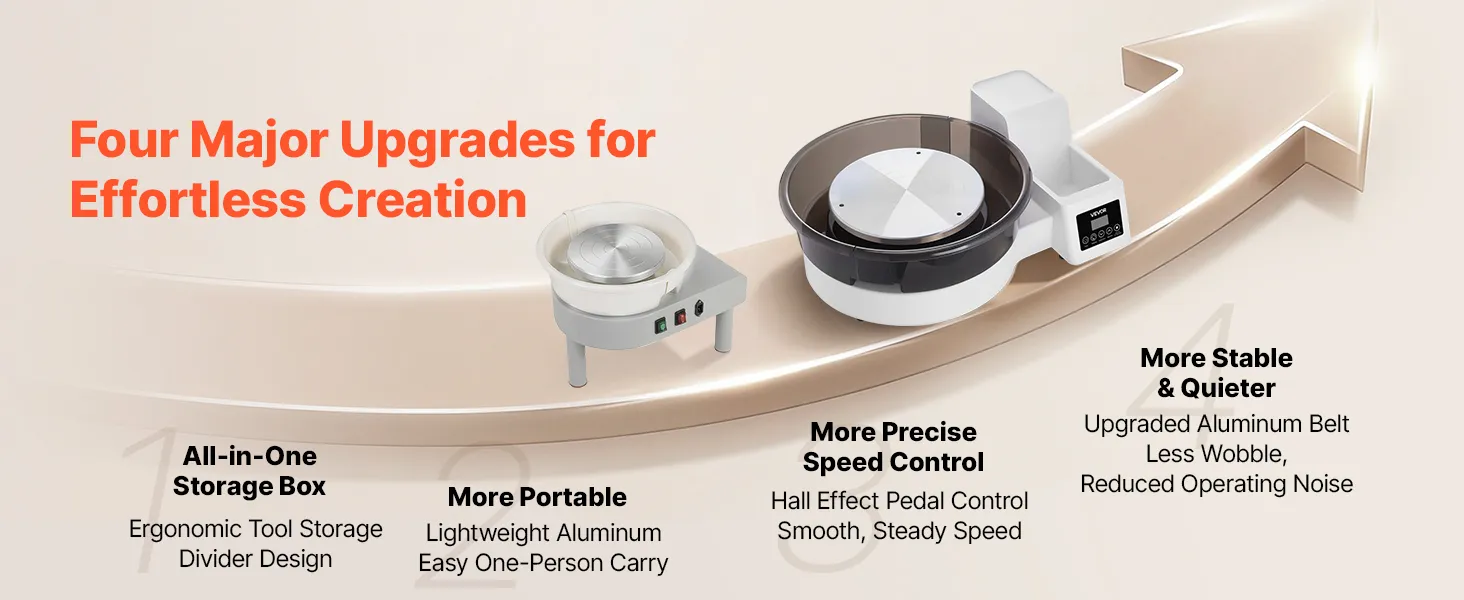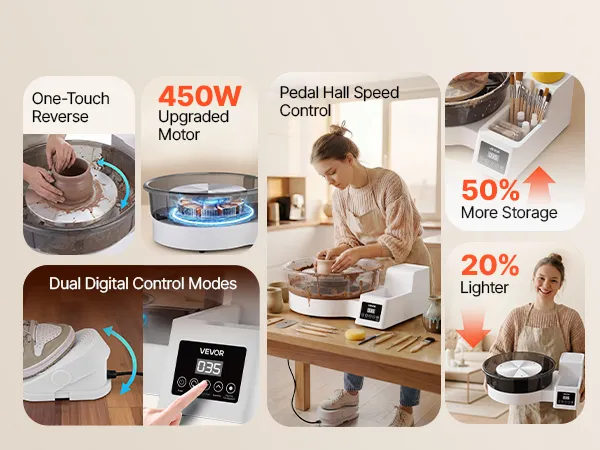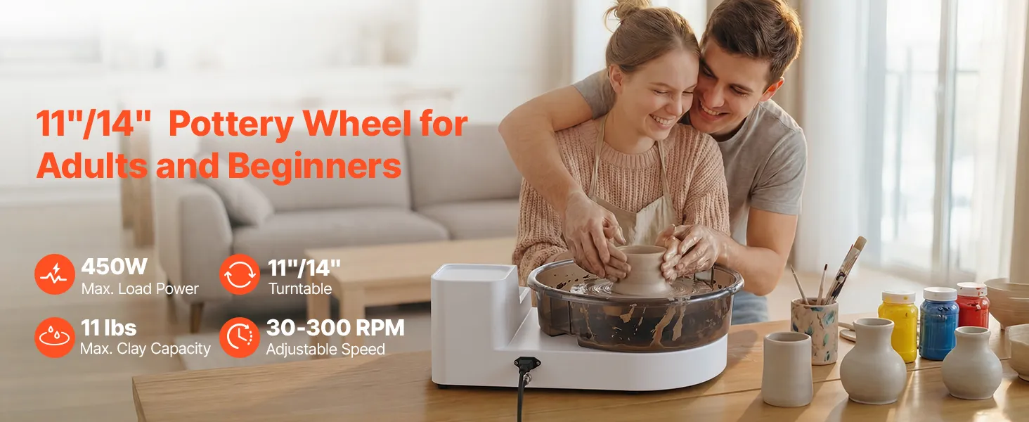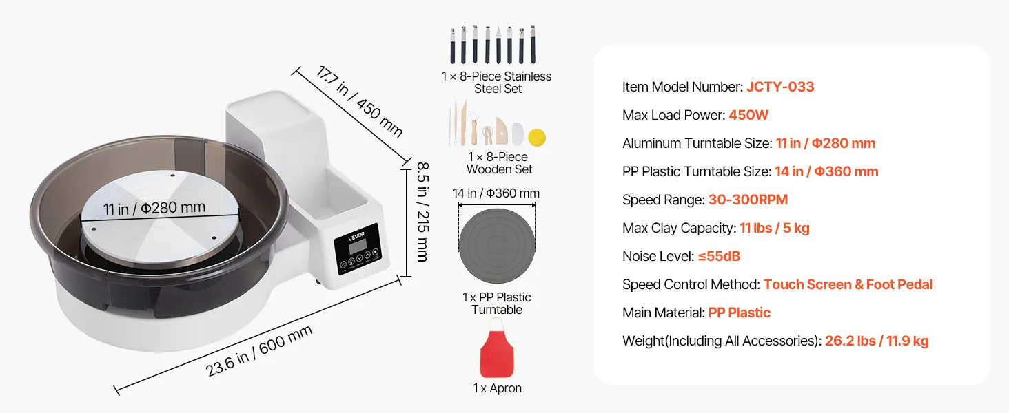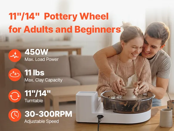 • Großzügige & robuste Arbeitsfläche: Diese Töpferscheibe ist ideal für ambitionierte Anfänger geeignet und bietet mit ihren 11-Zoll- und 14-Zoll-Drehtellern (28 / 36 cm) viel Platz zum Formen. Der 450-W-Motor liefert eine konstante Leistung und verarbeitet bis zu 11 lbs (5 kg) Ton für glatte, professionelle Ergebnisse