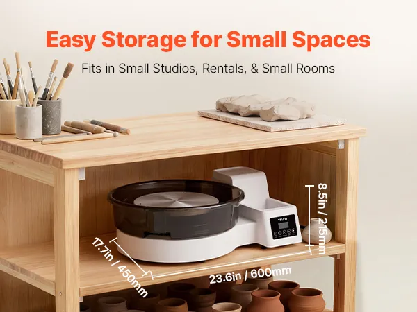 • Platzsparendes Design: Diese Töpferscheibe für Erwachsene wurde entwickelt, um kreative Arbeitsbereiche optimal zu nutzen. Die innovative Tischplatte ist 50 % kleiner als bei herkömmlichen Modellen, spart wertvollen Platz in Innenräumen und lässt sich leicht transportieren sowie verstauen