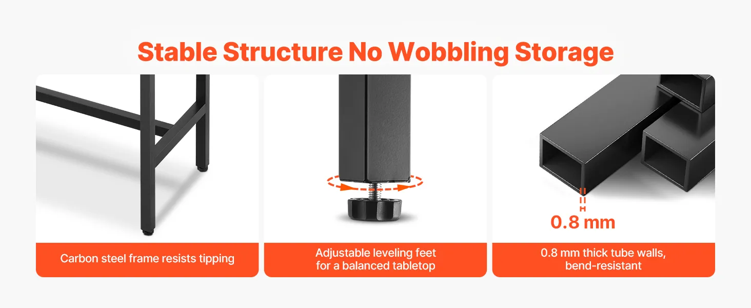 Einfache Montage: Der Stehtisch wird mit einer Schritt-für-Schritt-Anleitung geliefert, die den Aufbau in nur 3 einfachen Schritten schnell und einfach macht. Alle benötigten Schrauben und Zubehörteile sind im Lieferumfang enthalten – keine zusätzlichen Teile erforderlich. Die Nivellierfüße sorgen für Stabilität auf unebenen Flächen.