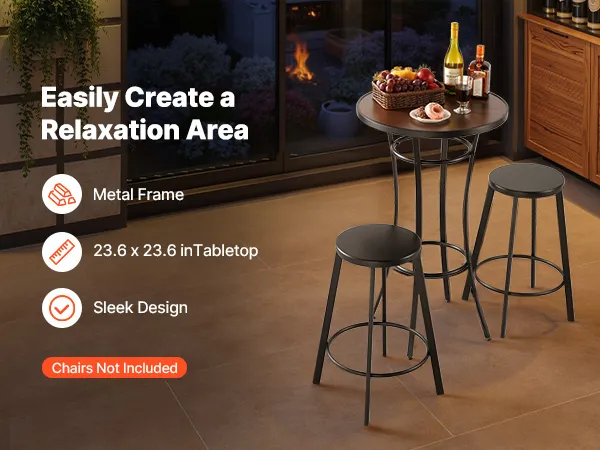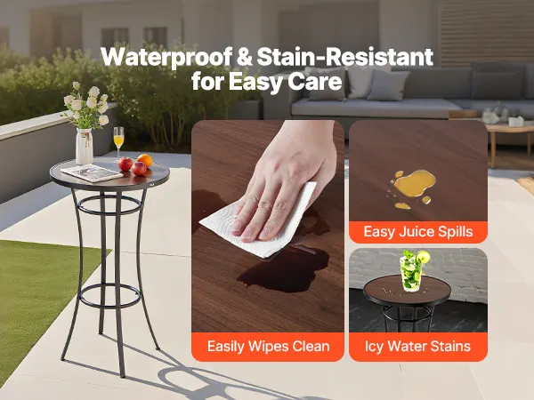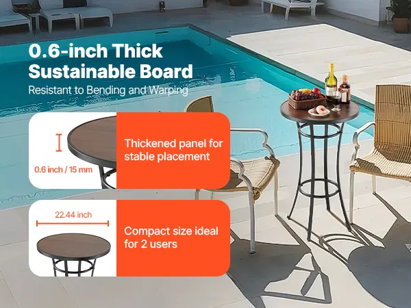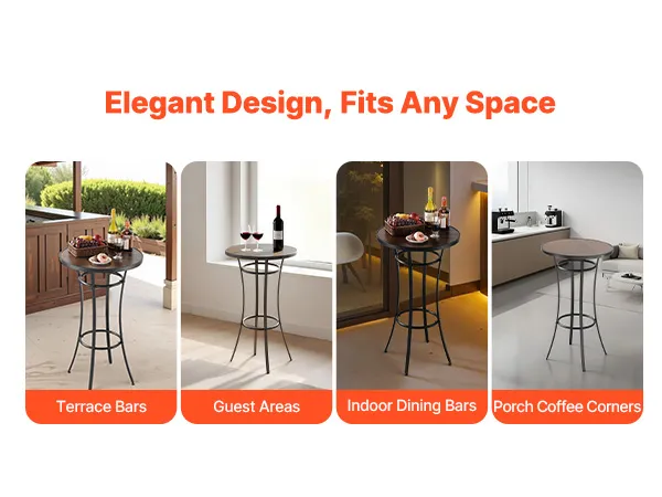 Unser runder Terrassenbartisch mit 60 cm Durchmesser verfügt über einen stabilen Metallrahmen mit einer PVC-beschichteten Tischplatte, die Verformungen und Biegungen widersteht. Ideal für Terrassenbars, Loungebereiche und Kaffeepausen auf der Veranda – dieser Terrassenbartisch eignet sich ideal für gemütliche Treffen oder zum Entspannen in der Freizeit.