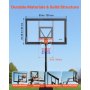 VEVOR tragbarer Basketballständer, max. 3,05 m höhenverstellbarer (manuell) Basketballkorb, Basketballanlage mit 130 cm PC-Rückwand, Basketballkorsystem Backboard-Set für Terrassen Schulen