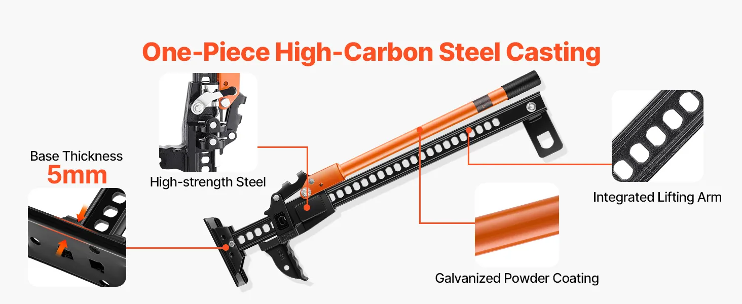 VEVOR Farm Wagenheber Offroad High Lift Farm Jack (3,18 t belastbar) Offroad-Nutzwagenheber, Stoßstangenheber Hochleistungshebebühnen mit 130,1–711,2 mm Hubbereich für Traktor Lkw SUV