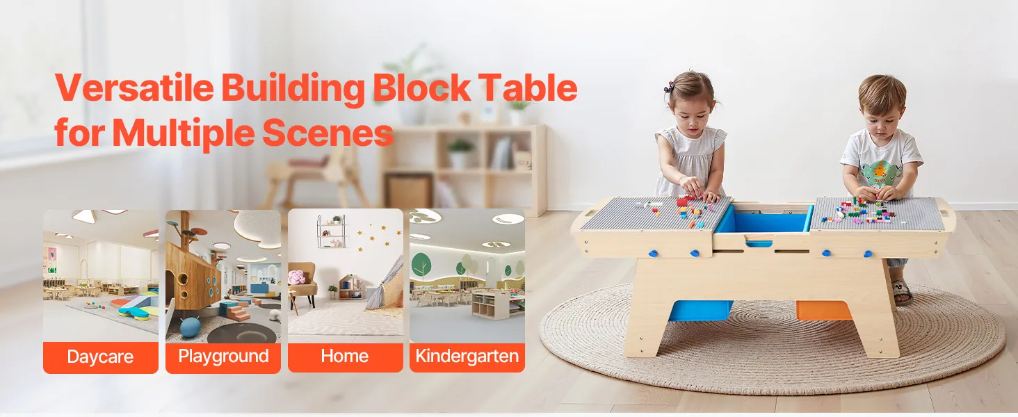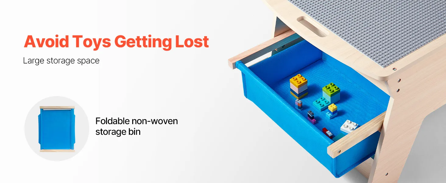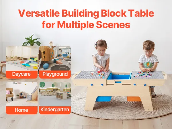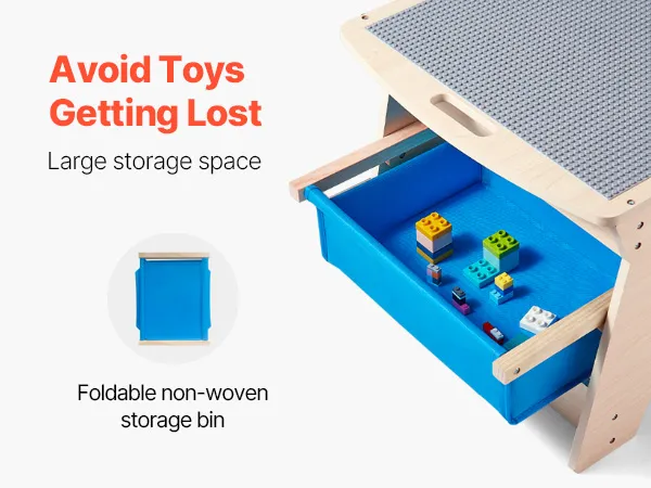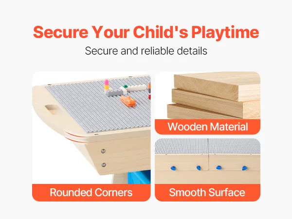 Dieser Bausteintisch ist mit einer wendbaren Tischplatte ausgestattet – ideal zum Bauen, Lernen oder Essen! Der stabile Holzrahmen wächst mit Ihrem Kind mit und fördert die Hand-Augen-Koordination und gute Gewohnheiten.