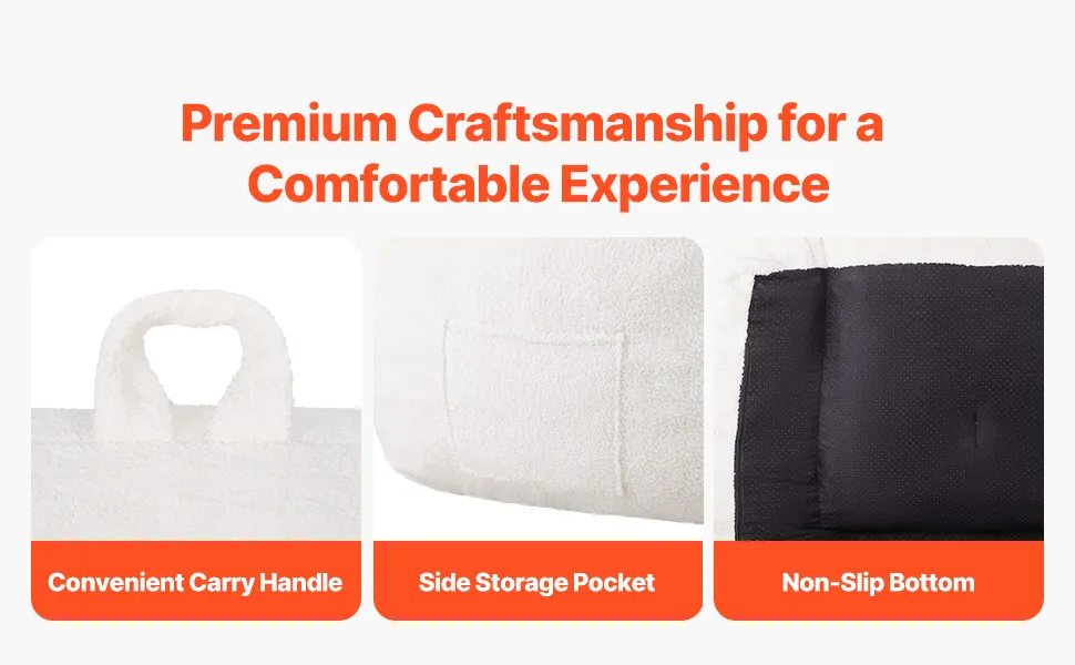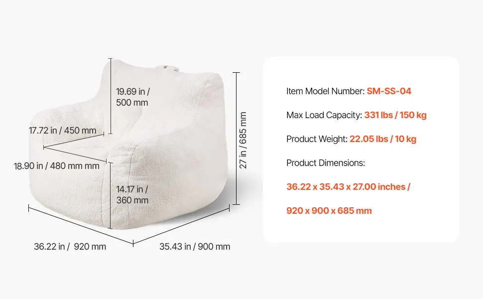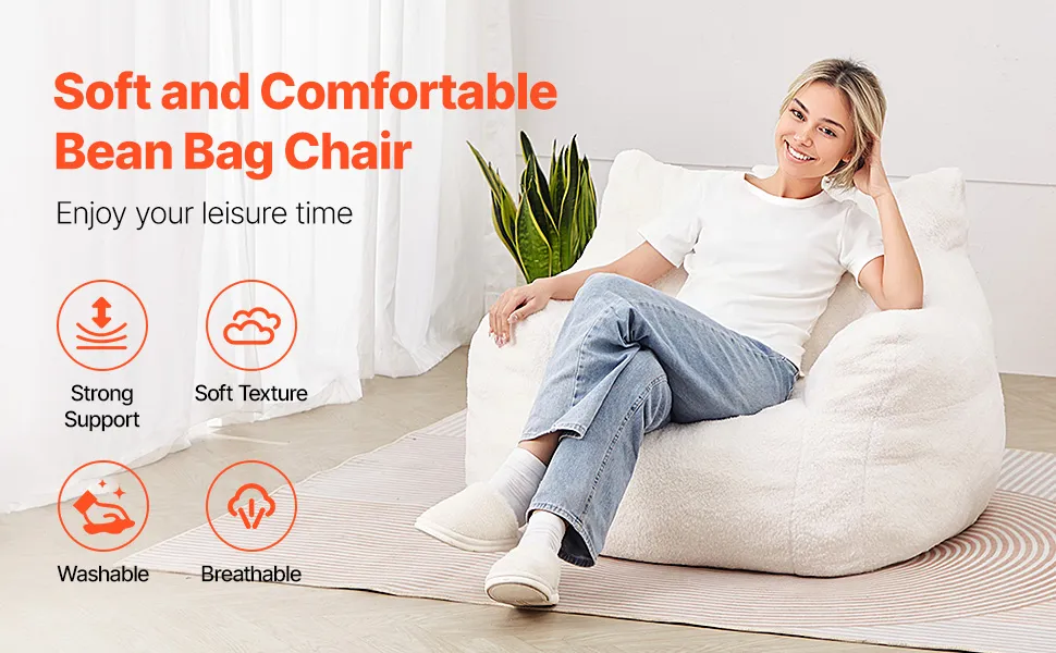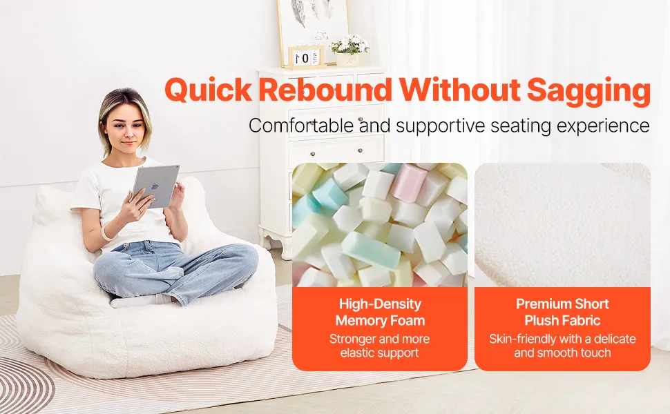 VEVOR Sitzsack Sitzkissen Bean Bag (920 x 900 x 685 mm) mit Armlehnen & Aufbewahrungstasche, gefüllt mit 25D Memory Foam mit weichem Teddy-Samtbezug, Sitzsack für Schlafzimmer Spielzimmer, Weiß