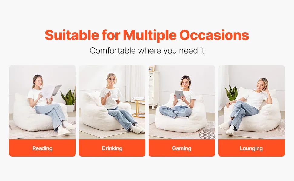 Vielseitig für jeden Raum: Dieser Sitzsack ist perfekt für Spielzimmer, Schlafzimmer oder Familienbereiche und fügt sich nahtlos in jeden Raum ein. Er verbessert sowohl die Schönheit als auch die Funktionalität Ihres Zuhauses. Kein Zusammenbau erforderlich – nehmen Sie ihn einfach aus der komprimierten Verpackung und genießen Sie sofortigen Komfort