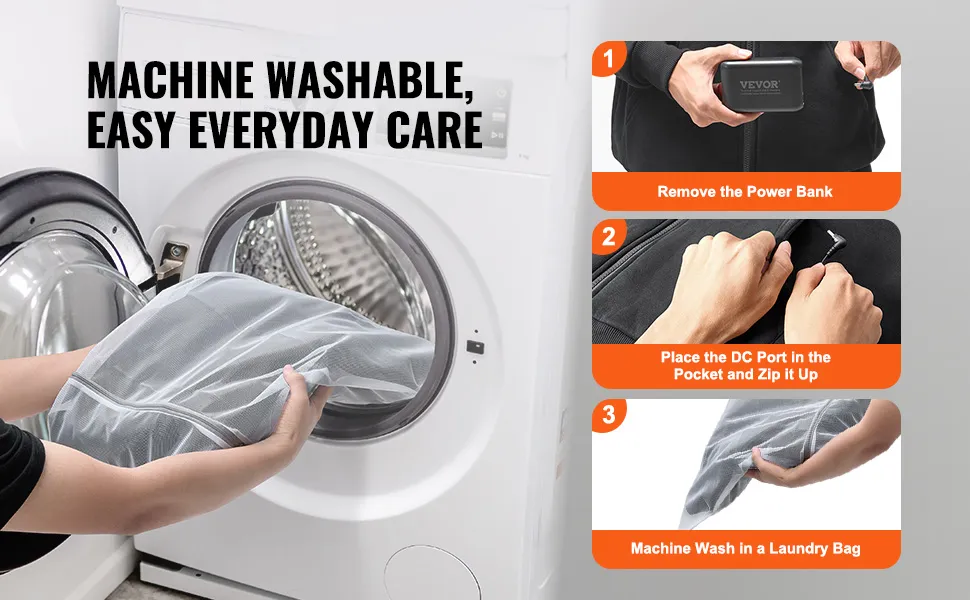 Klassisches und durchdachtes Design: 100 % Baumwollpolyester (50 % Baumwolle + 50 % Polyester), weiches Fleecefutter (100 % Polyester), angenehm zu tragen, gute Isolierung; YKK-Reißverschluss; pflegeleicht. Maschinenwaschbar, entnehmen Sie den Akku, stecken Sie den DC-Anschluss in die Tasche, schließen Sie ihn mit dem Reißverschluss und legen Sie ihn in einen Wäschesack zum Waschen in der Maschine. Entspricht der US-Standardgröße, sodass sowohl zierliche Frauen als auch große Männer eine perfekte Passform finden können
