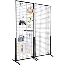 VEVOR Gitterwandpaneele Gitterwand 60 x 164 cm 2 Stk. rollbarer Präsentationsständer mit 20 Haken, Präsentationsregale aus Karbonstahl, Kunstausstellungsregal für Dekoration Lagerung, schwarz
