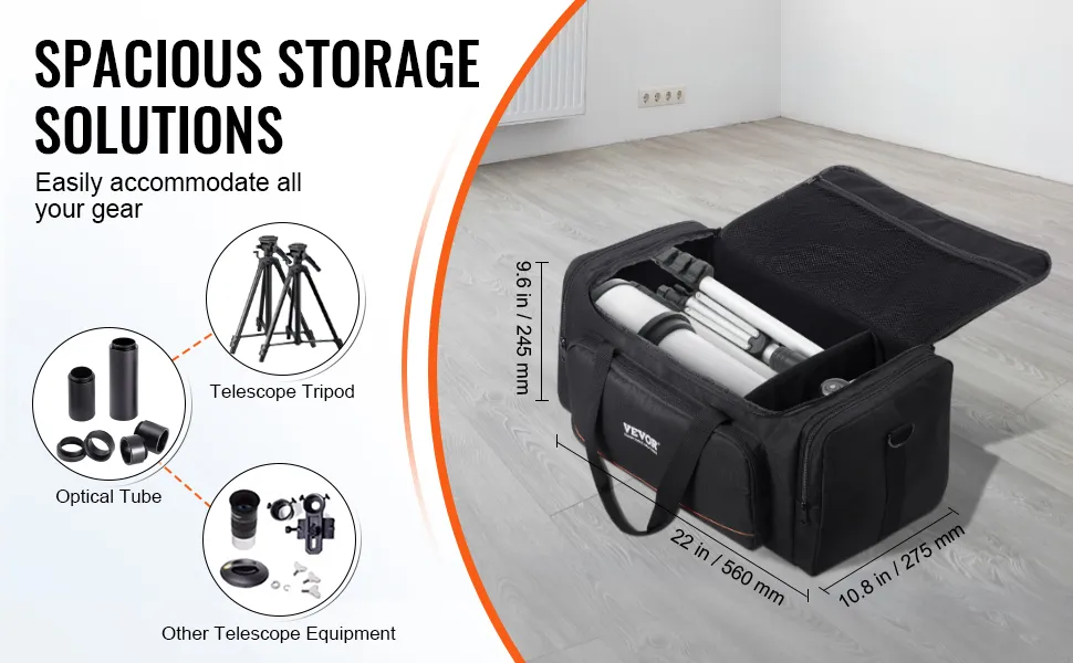 VEVOR Teleskoptasche, 560 mm, Transporttasche für Teleskope mit festen Schnallen, mehrere Taschen & abnehmbare Trennwand für Teleskope, Teleskop-Tragetasche zur Sicherung von optischem Tubus & Stativ