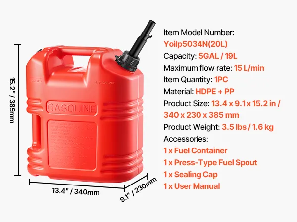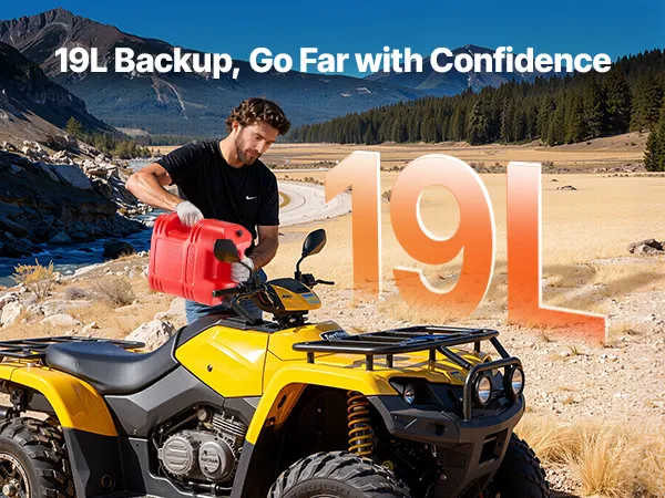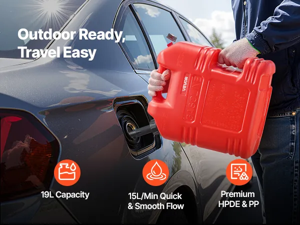 Kompakte Größe: Benötigen Sie Reservekraftstoff ohne Platzverlust? Dieser 19-Liter-Benzinkanister (340 x 230 x 385 mm) passt perfekt in Ihren Kofferraum. Er ist leicht und dennoch zuverlässig für Reisen, Camping oder Arbeiten im Freien.