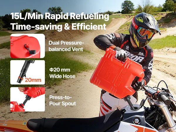 Gleichmäßiger, schneller Durchfluss von 15 L/min: Keine Lust mehr auf ruckeliges Nachfüllen? Dieser Kraftstoffkanister mit 20-mm-Schlauch und Doppelentlüftungsventil ermöglicht eine Durchflussmenge von bis zu 15 L/min und sorgt so jederzeit für einen gleichmäßigen, gleichmäßigen Durchfluss.