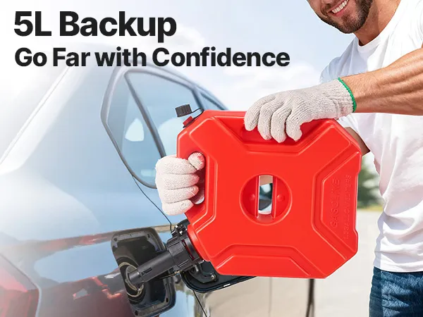 • Kompakte Größe: Benötigen Sie Reservekraftstoff, ohne Platz im Kofferraum zu verlieren? Dieser 5-Liter-Kraftstoffkanister passt perfekt hinein! Er ist leicht, tragbar und bereit für Roadtrips, Camping oder Arbeiten im Freien