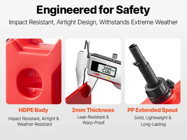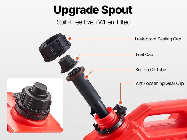 • Sicherer Verschluss gegen Lösen: Sorgen Sie sich um Lecks auf holprigen Straßen? Keine Sorge! Dieser Benzinkanister verfügt über einen auslaufsicheren Deckel, einen Zahnradclip und ein integriertes Rohr, die ihn jederzeit dicht halten.