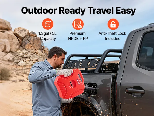 • Sichere Diebstahlsicherung: Haben Sie sich jemals Sorgen gemacht, dass Ihr Kraftstoff verloren geht? Jetzt nicht mehr! Dieser flache Flüssigkeitsbehälter ist mit einem Diebstahlsicherungsschloss ausgestattet, sodass Ihr Kraftstoff auf Campingplätzen, Parkplätzen oder Wanderwegen sicher bleibt.