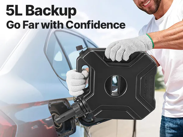 Kompakte Größe: Benötigen Sie Reservekraftstoff, ohne Platz im Kofferraum zu verlieren? Dieser 5-Liter-Kraftstoffkanister passt perfekt hinein! Er ist leicht, tragbar und bereit für Roadtrips, Camping oder Arbeiten im Freien