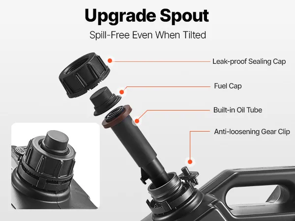 Sicherer Verschluss gegen Lösen: Sorgen Sie sich um Lecks auf holprigen Straßen? Keine Sorge! Dieser Benzinkanister verfügt über einen auslaufsicheren Deckel, einen Zahnradclip und ein integriertes Rohr, die ihn jederzeit dicht halten.
