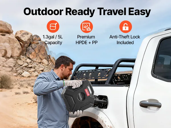Sichere Diebstahlsicherung: Haben Sie sich jemals Sorgen gemacht, dass Ihr Kraftstoff verloren geht? Jetzt nicht mehr! Dieser flache Flüssigkeitsbehälter ist mit einem Diebstahlsicherungsschloss ausgestattet, sodass Ihr Kraftstoff auf Campingplätzen, Parkplätzen oder Wanderwegen sicher bleibt.