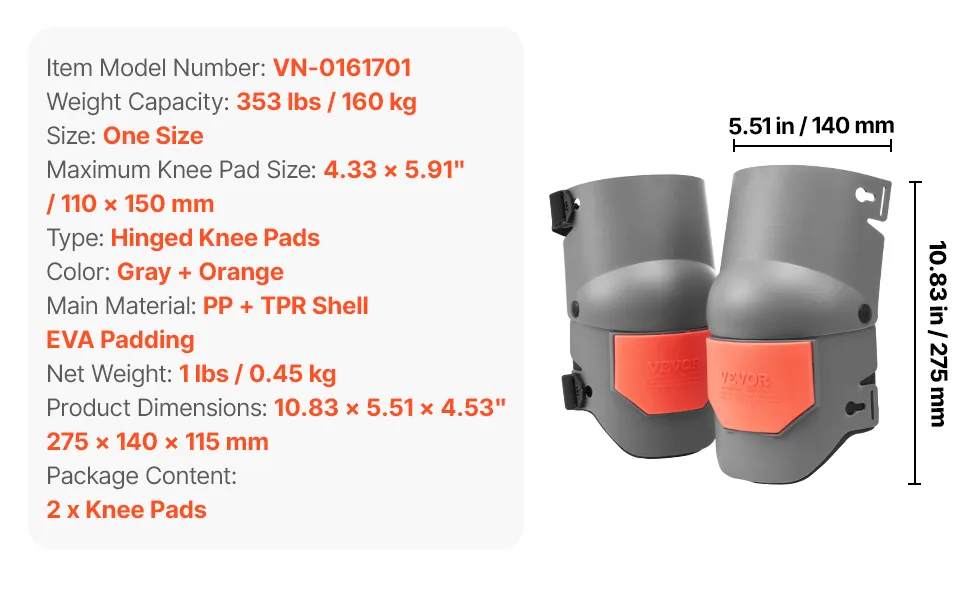 VEVOR Knieschoner 275x140x115 cm, extra dicke Knieschützer mit Schaumstoffpolsterung – Profi Schutz & Komfort, Fliesenleger, Kniepolster, Knieschoner für Gartenarbeit, Bodenverlegung, Grau & Orange