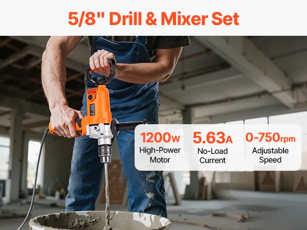 1200-W-Motor: Mit einem leistungsstarken 1200-W-Motor, 3 A Stromstärke und einem langlebigen 5/8 Zoll (15,89 mm) Metallbohrfutter bewältigt dieser Bohrmixer anspruchsvolle Misch- und Bohraufgaben – und hilft Ihnen, mehr Arbeit in kürzerer Zeit und mit weniger Unterbrechungen zu erledigen