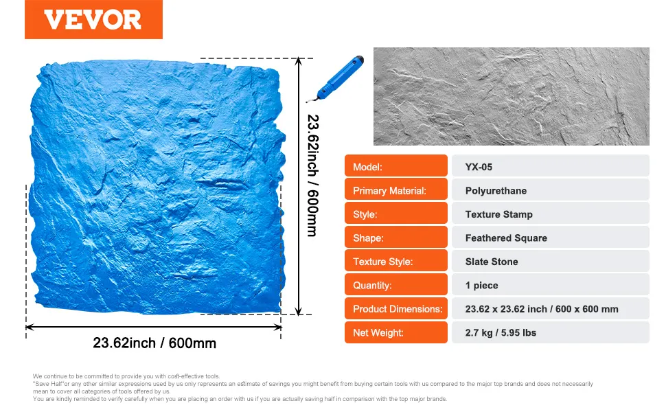 Großes Design: Mit den Maßen 23,62 x 23,62 Zoll / 600 x 600 mm deckt diese große Größe mehr Betonoberfläche in einem Durchgang ab, sodass Sie das Stempeln schnell abschließen können. Die großzügige Größe erleichtert auch das Zuschneiden auf die gewünschten Abmessungen und eignet sich sowohl für große als auch für kleine Flächen.