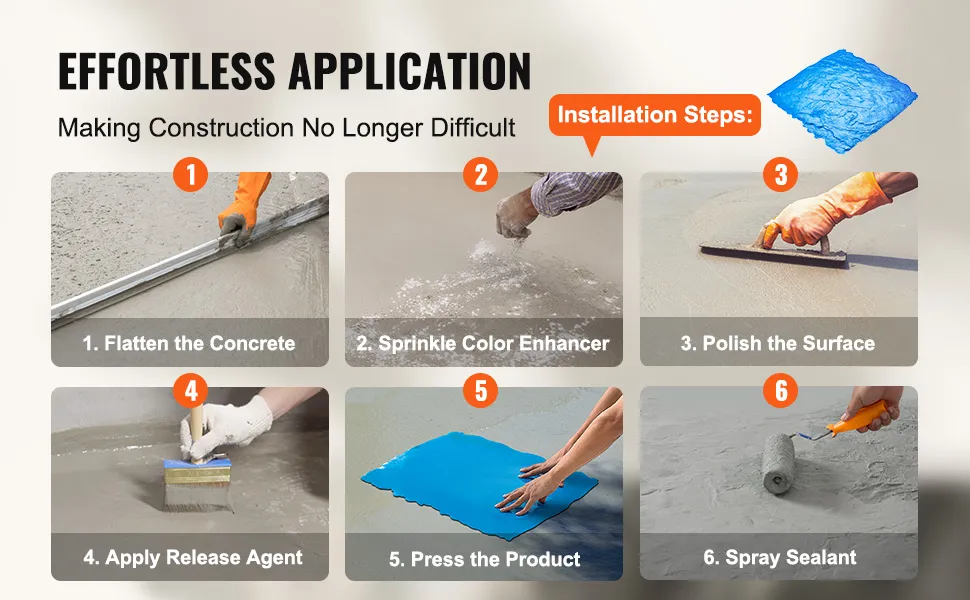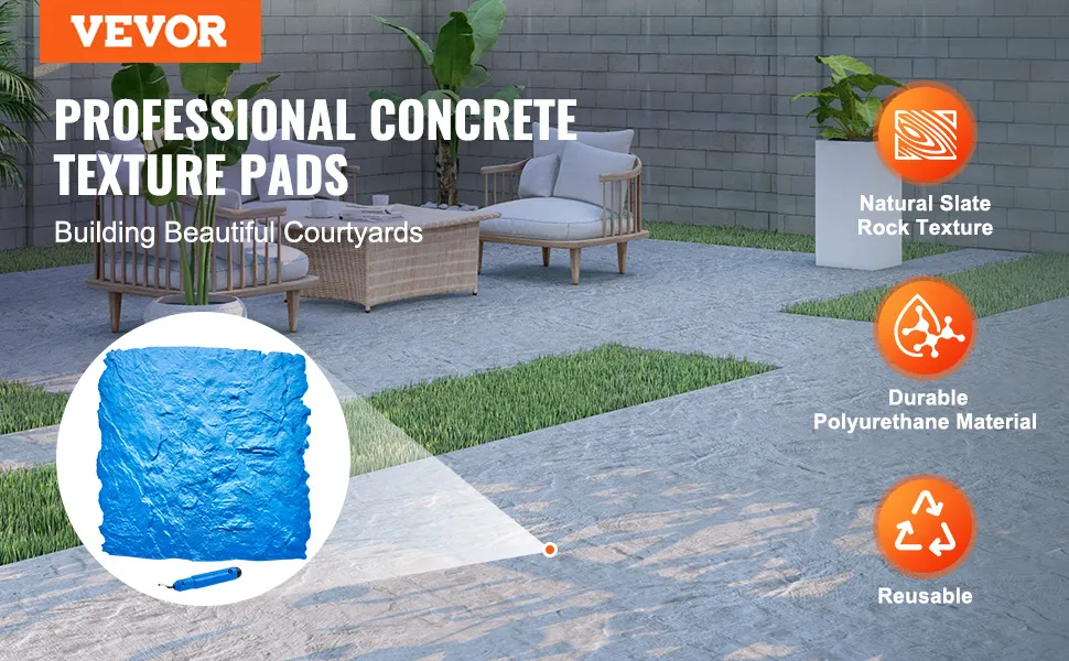 Vielseitige Anwendungen: Mit ihren einzigartigen und natürlichen Texturen verleiht unsere Form matten Betonoberflächen dekorative Muster. Sie wird häufig auf Betonböden, Terrassen, Pooldecks, Einfahrten, Gehwegen, Arbeitsplatten und Wänden verwendet und bietet außerdem rutschfeste Eigenschaften.