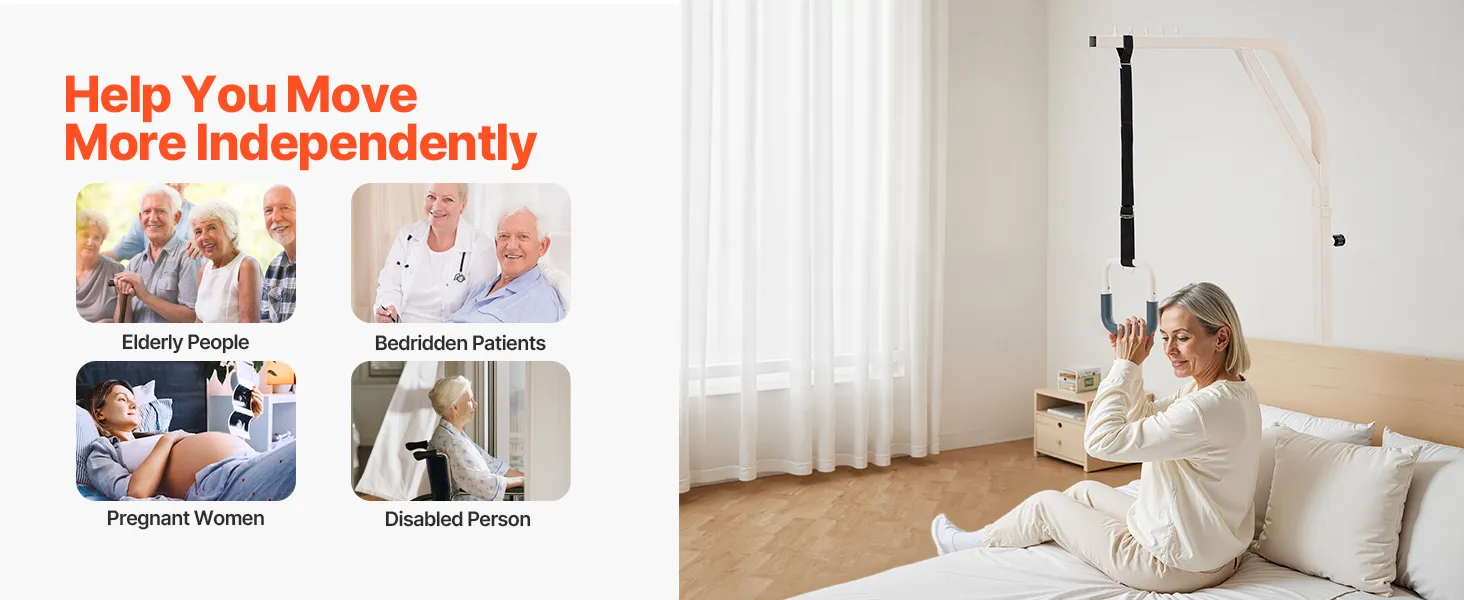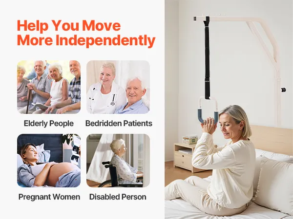 Fördert die tägliche Mobilität: Ideal für Senioren, Menschen mit Behinderung und eingeschränkter Mobilität. Dieser Bettgalgen ermöglicht den sicheren Transfer in den Rollstuhl oder hilft beim selbstständigen Ein- und Aussteigen. Sie kann auch als Trainingsgerät zur Stärkung des Oberkörpers und zur Förderung der Regeneration dienen und so zu einem unabhängigeren und selbstbewussteren Leben beitragen