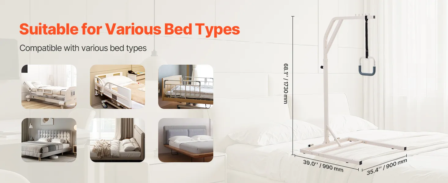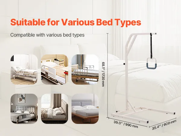 Vielseitige Anwendungsmöglichkeiten: Dieser Bettaufrichter mit Bodenständer passt nahtlos unter verschiedene Betttypen, spart Platz und bietet gleichzeitig starken, wackelfreien Halt. Ideal für Krankenhäuser, Pflegeheime und die häusliche Pflege, um Menschen mit eingeschränkter Mobilität beim Aufstehen zu unterstützen. Sie stärkt die Unabhängigkeit im Alltag und sorgt für ein sichereres und komfortableres Erlebnis