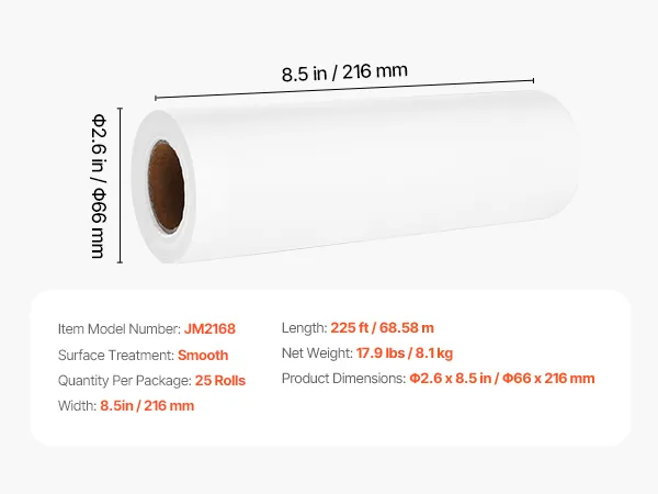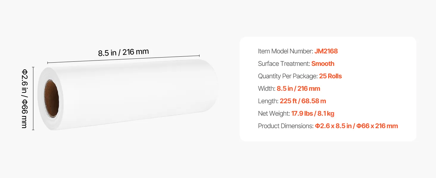 VEVOR Einwegauflagen für Gesichtskissen und Massageliege, 25 Packungen 216 mm x 68,58 m, Einweg-Kopfstützenpapier, ideal für Massage-, Untersuchungs- und Chiropraktiktische, weiß