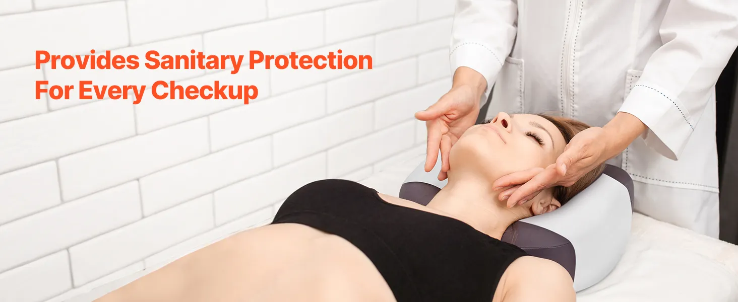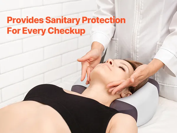 Barriere zur Kontaminationsprävention: Dieses Einweg-Kopfstützenpapier bildet eine komfortable Schutzbarriere zwischen dem Patienten und der Behandlungsliege, verhindert wirksam die Kontamination durch Staub, Körperflüssigkeiten und Schmutz und sorgt bei jeder Verwendung für ein sicheres und sauberes Erlebnis.