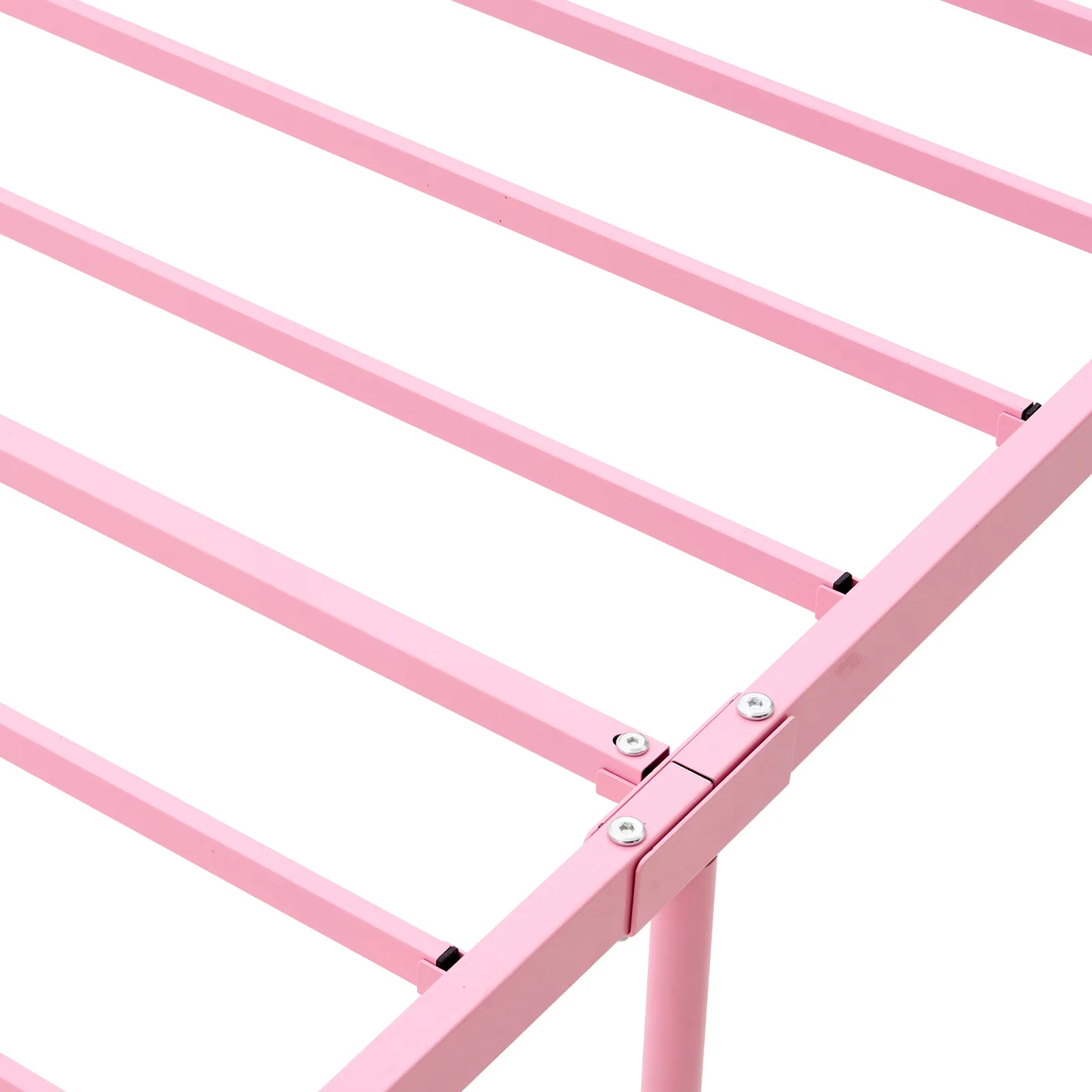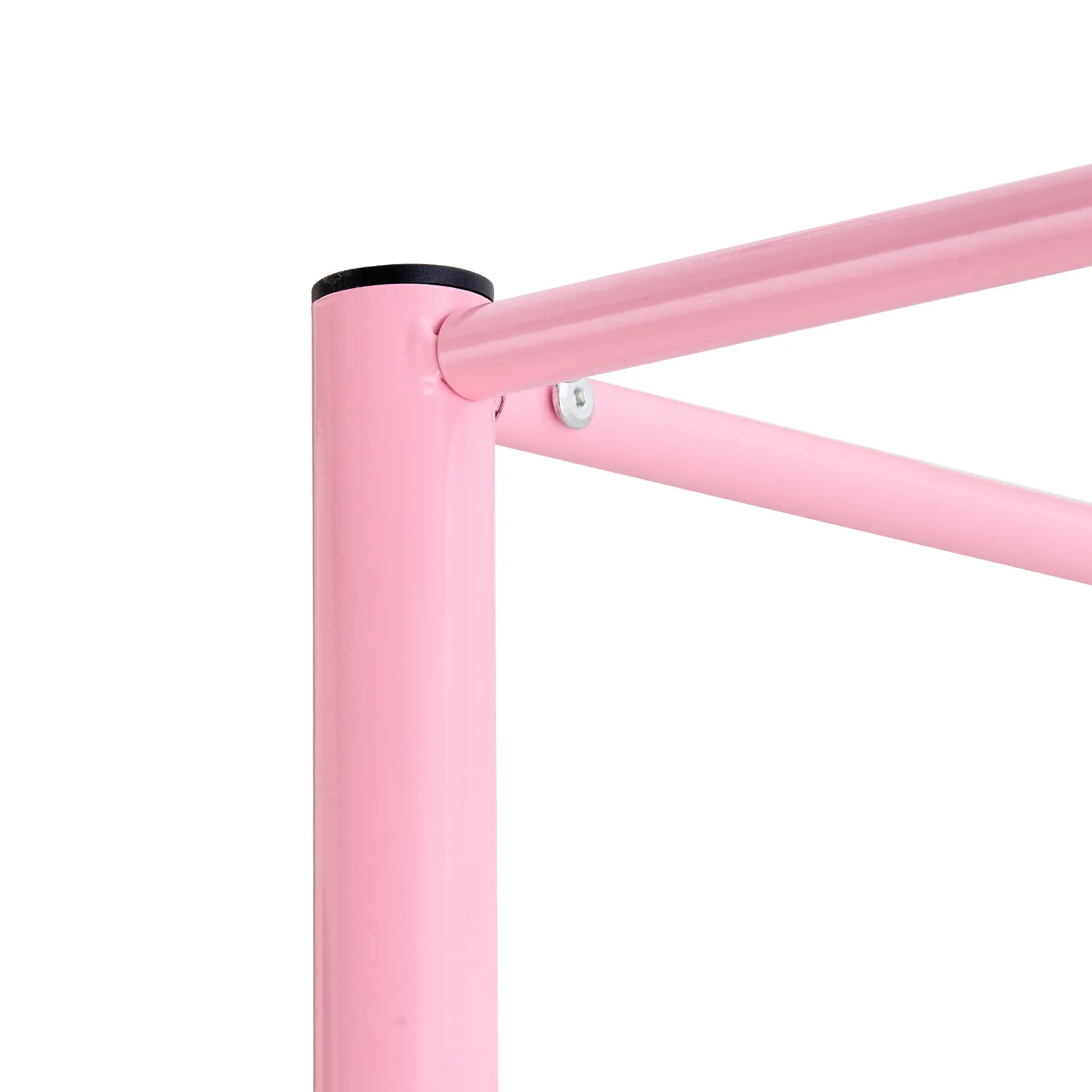 VEVOR Himmelbettrahmen (Twin Size), Metallhimmelbett mit minimalistischem Kopfteil & Himmelbett-Design, robuste Stahllattenstütze (rund), Stauraum unter dem Bett, kein Boxspring erforderlich, Rosa