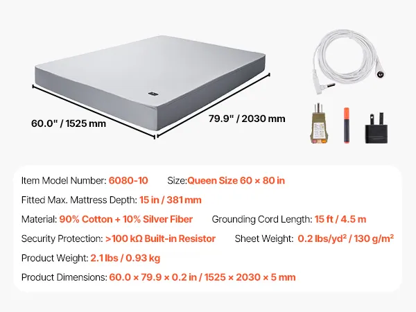 Komfort ohne Stromschlag: Dieses Erdungs-Spannbettlaken verfügt über einen eingebauten Widerstand von >100 kΩ, der eine sichere Verwendung gewährleistet. Es schützt den Benutzer vor Stromschlägen bei Stromausfällen oder Gewittern
