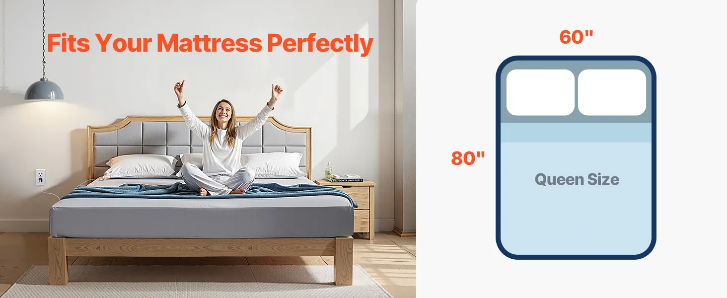 Maßgeschneiderte Passform für Ihre Matratze: Dieses Spannbettlaken misst 60 x 80 Zoll / 1525 x 2030 mm und passt auf Matratzen mit einer Tiefe von bis zu 15 Zoll / 381 mm. Nach leichtem Falten eignet es sich hervorragend für Queensize-Betten.