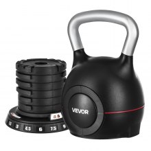 VEVOR Kugelhantel verstellbare Kettlebell mit 7 Gewichtsstufen (1,5/3/4,5/6/7,5/9/10 kg), Schwunghantel aus ABS + Aluminium-Druckguss, für Griffkrafttraining Ganzkörpertraining Cross-Training