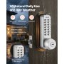 Verbessertes mechanisches Türschloss 2.0: Ändern Sie Ihren Code direkt über den Türgriff und das Tastenfeld, ohne das Schloss auszubauen. Entriegeln Sie mit einem einfachen mechanischen Code – keine Elektronik nötig – und löschen Sie die Eingabe mit der C-Taste für schnelle Korrekturen