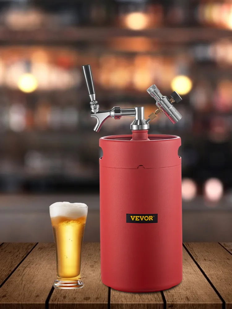 Diese Mini-Fassbierzapfanlage hat ein Fassungsvermögen von 270 Oz (8 L), das für etwa 16 Tassen frisches Bier ausreicht. Mit einer kompakten Abmessung von Φ 7,3 x 14.0 Zoll (Φ 186 x 355 mm) passt er problemlos in Ihren Kühlschrank oder Mini-Kegerator zu Hause.