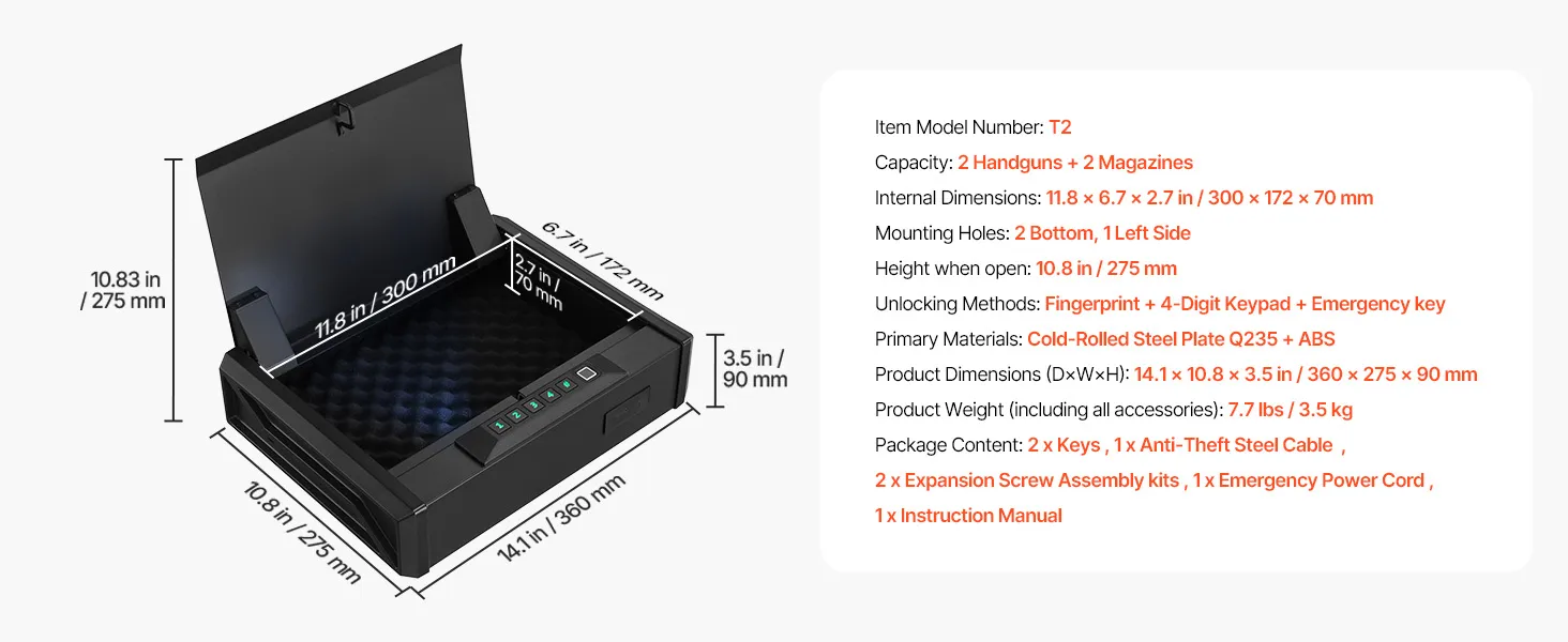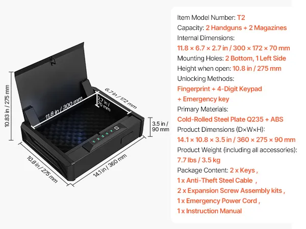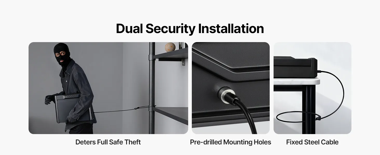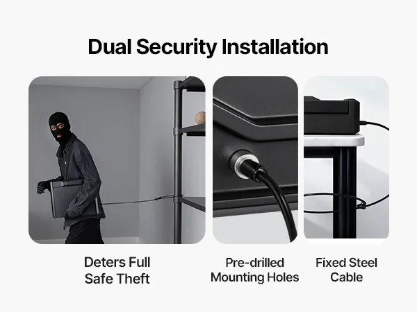 Doppelmontage: Dieser Pistolentresor verfügt über ein Sicherheitskabel und Dehnschrauben und bietet somit zwei Montagemöglichkeiten. Für schnellen Zugriff an jedem festen Gegenstand befestigen, ideal für Schreibtische, Nachttische, Bücherregale oder Fahrzeuge
