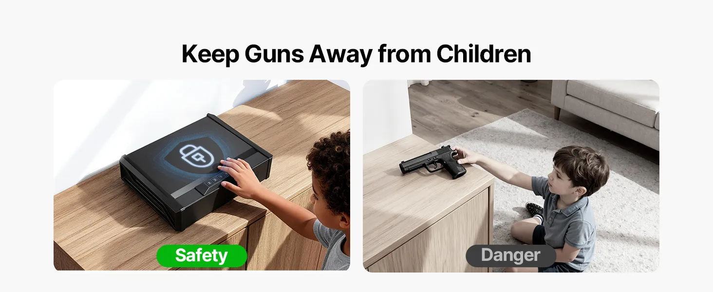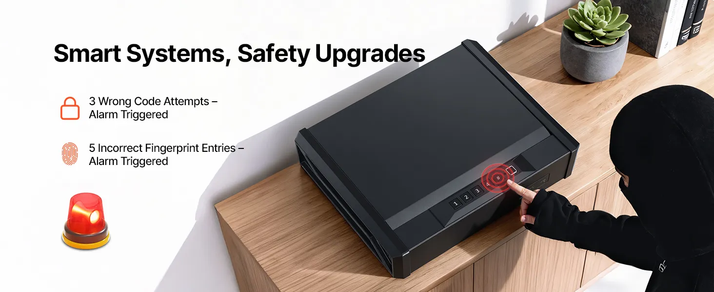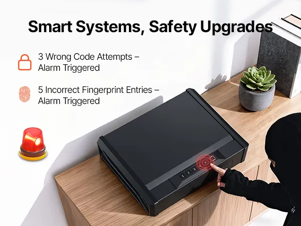Intelligentes Sicherheitssystem: Der Pistolentresor verfügt über einen Lautlosmodus für diskreten Zugriff auf die Waffe im Notfall. Die dreimalige Eingabe des falschen Codes löst einen Alarm aus und bietet zusätzlichen Schutz für Ihre Waffe und Ihr Zuhause