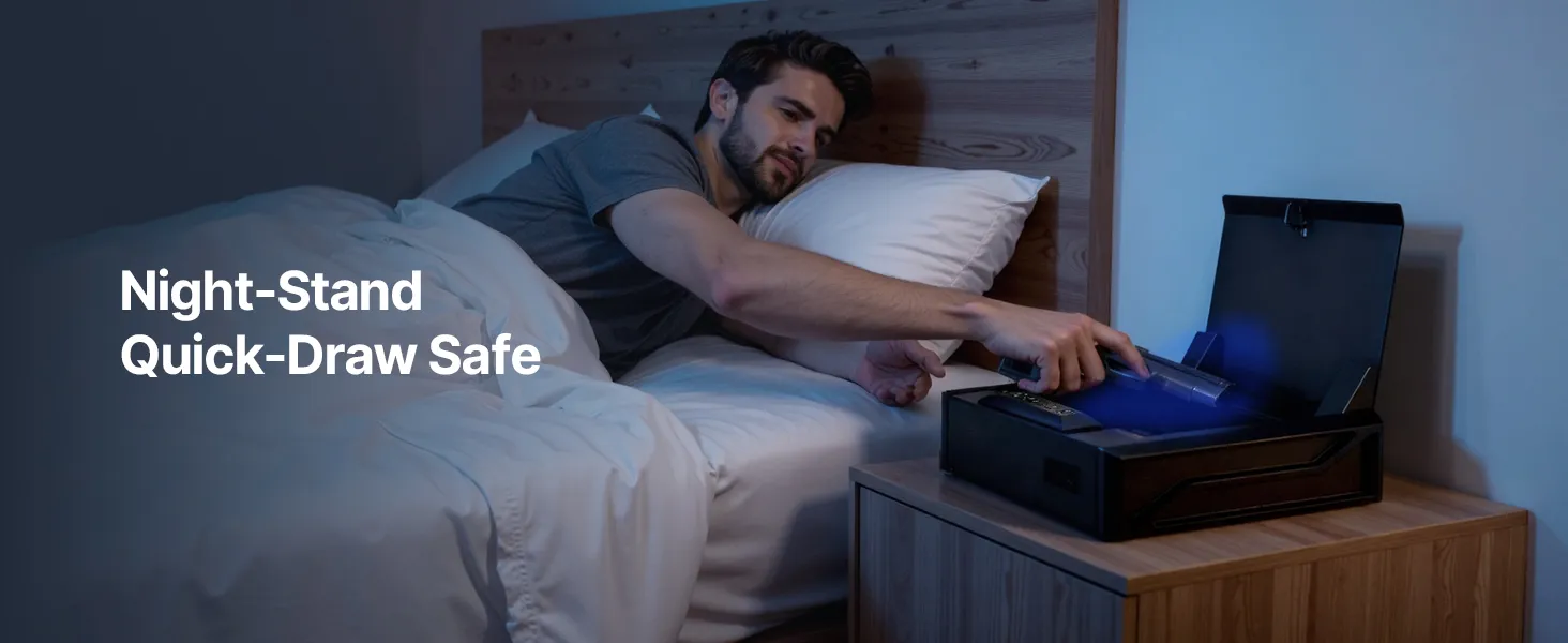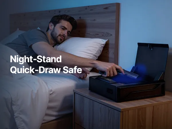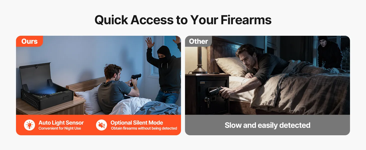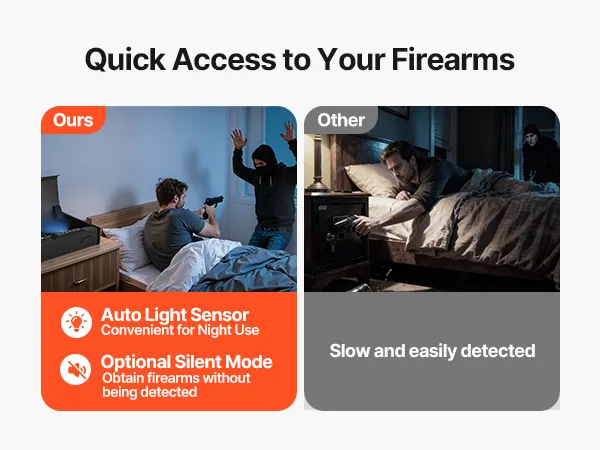 Schneller Zugriff: Unsere Waffenkofferbox bietet Platz für zwei Handfeuerwaffen und zwei Magazine und verfügt über einen Deckel für schnellen Zugriff. Die automatische Beleuchtung sorgt für klare Sicht auch bei schlechten Lichtverhältnissen im Notfall