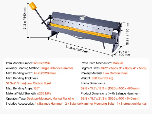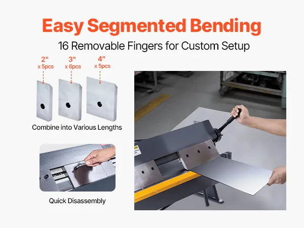 Biegen Sie Metall wie ein Profi mit dieser 48-Zoll (1220 mm)-Blechbiegemaschine. Die Schwenkbiegemaschine ist ideal für Werkstätten, verarbeitet 16-Gauge-Stahl, unterstützt verschiedene Materialien und verfügt über modulare Finger für komplexe Biegungen – einfach zu bedienen, stabil und für präzises Biegen ausgelegt.