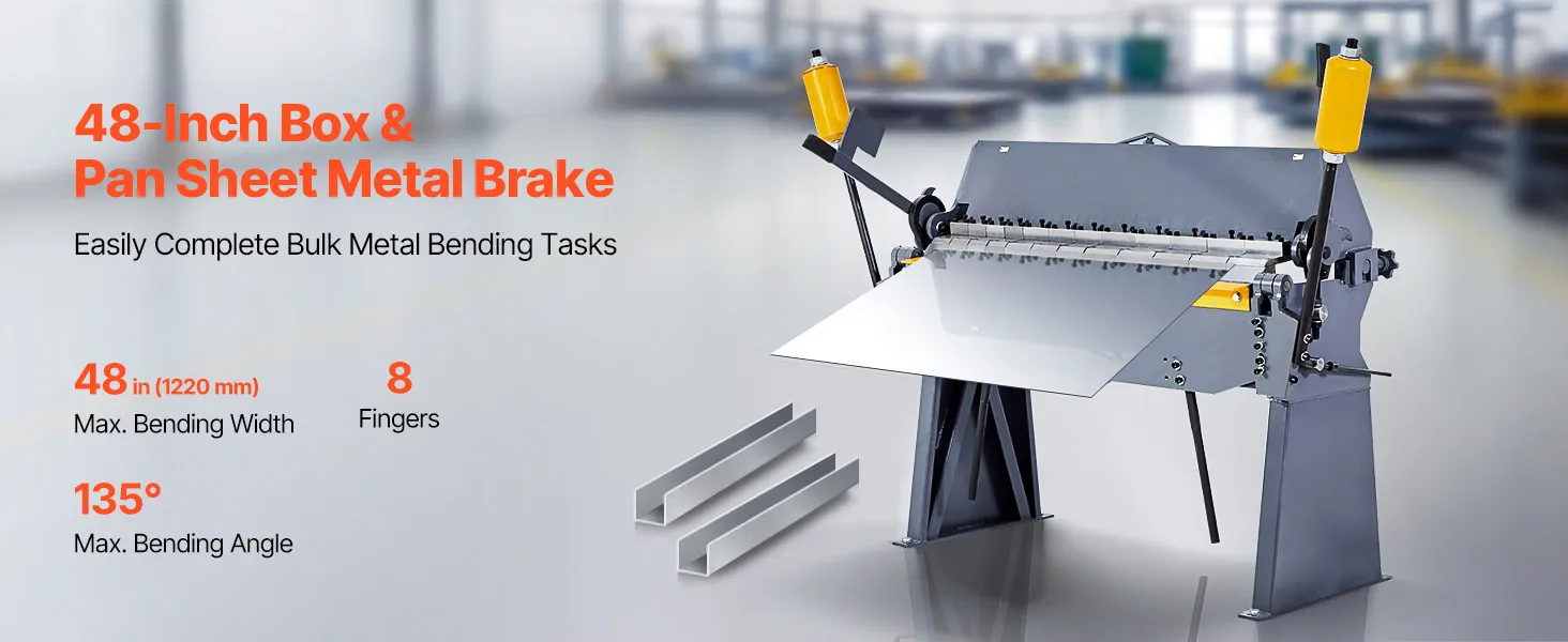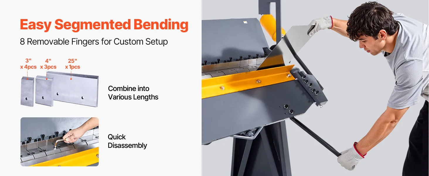 VEVOR Biegemaschine, 1220 mm Kantbank, 2,5-mm-Weichstahl-Biegedicke, 0–135 Grad einstellbar, Blechbieger, Schwenkbiegemaschine mit 8 Fingern, Blechbiegemaschine für präzises Biegen