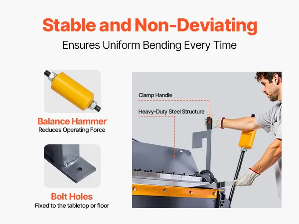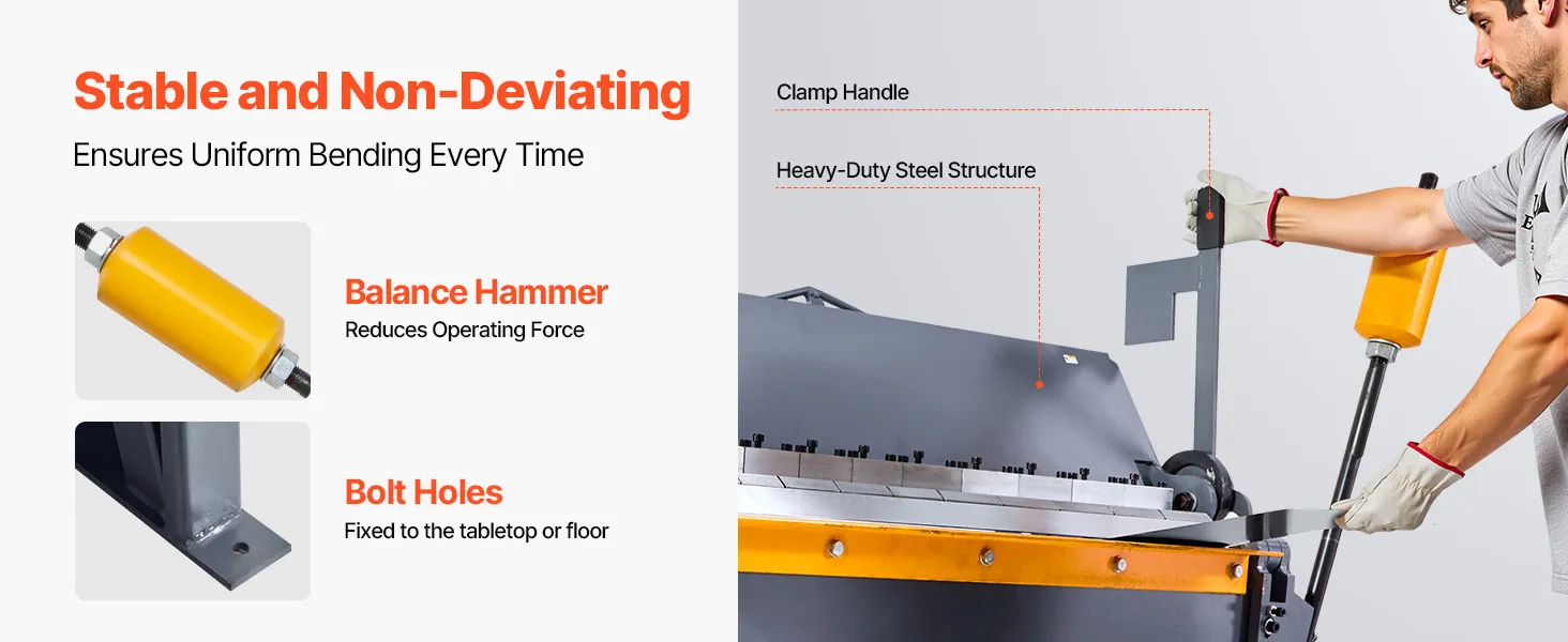 Verbessert durch ein Ausgleichsgewicht, das die Kraft beim Spannen ausgleicht und die Verformung minimiert – eine Verbesserung gegenüber Standardbremsen. Schrauben Sie es an Ihre Werkbank, um gleichmäßige und präzise Biegungen zu gewährleisten.