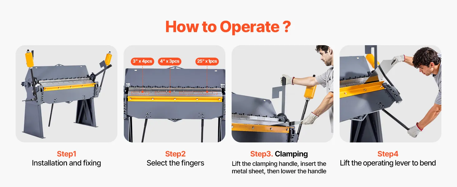 Biegen Sie Metall wie ein Profi mit dieser 48-Zoll (1220 mm)-Blechbiegemaschine. Die Schwenkbiegemaschine ist ideal für Werkstätten, verarbeitet 12-Gauge (2,5 mm)-Stahl, unterstützt verschiedene Materialien und verfügt über modulare Finger für komplexe Biegungen – einfach zu bedienen, stabil und für präzises Biegen ausgelegt.