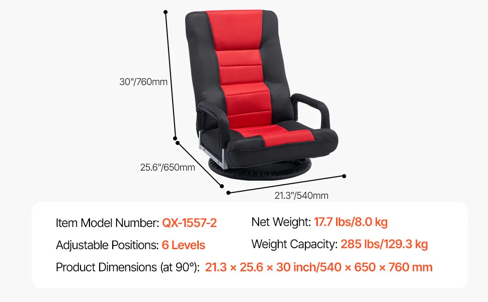 Verstellbare Rückenlehne: Dieser Bodenstuhl verfügt über 6 präzise Einstellstufen, sodass Sie eine bequeme Sitz- oder Liegeposition zum Lesen, Arbeiten, Entspannen oder Ausruhen finden können, die den verschiedenen Lebensstilanforderungen gerecht wird